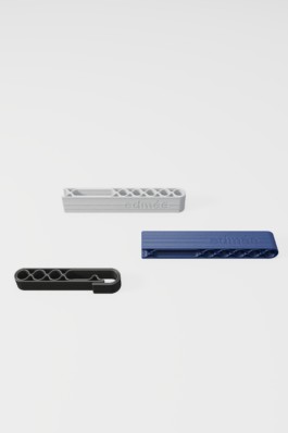 Clip is a range of accessories designed for Edmée, a Paris-based brand of women's clothing for urban cycling. This range of objects is imagined as a link between clothing and functions related to cycling. Three types have been developed based on a clip principle that exploits the flexibility of printed bioplastics. A key ring, a dress clip and a trouser clip.