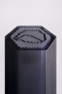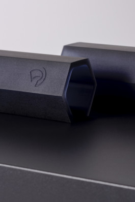 The hexagonal shape of the trophy is designed so that it can be arranged vertically or horizontally, becoming a minimal decorative element.