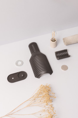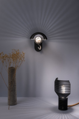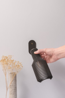 Composé de deux pièces enserrant une source Led, le maillage permet de modeler deux ambiances lumineuses. En partie basse, un éclairage diffus et orienté. En partie haute, un jeu d'ombres et de lumière.