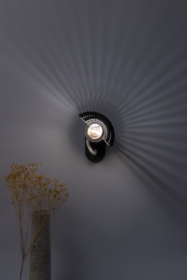 Le luminaire existe à travers sa forme énigmatique lorsqu'il est éteint et rayonne de faisceaux une fois allumé.